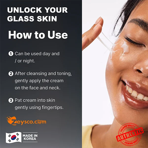 தோலை சுத்தம் செய்த பின், தேவையான அளவு கிரீம் முகத்திலும் கழுத்திலும் மெதுவாக தடவவும். காலை மற்றும் இரவு முறைகளில் பயன்படுத்தவும்.
