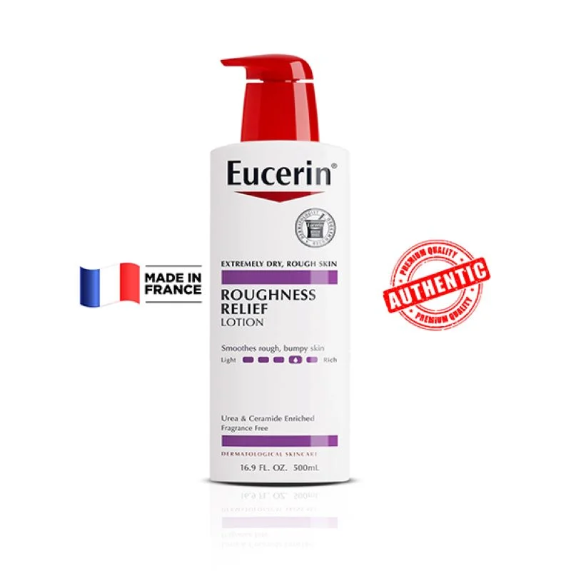 யூரியா, செரமைட்ஸ் மற்றும் இயற்கை ஈரப்பத காரகங்கள் கொண்ட Eucerin Roughness Relief Lotion உலர்ந்த, கரடுமுரடான தோலை மிருதுவாகவும் மென்மையாகவும் மாற்றுகிறது. இது மென்மையாக எக்ஸ்ஃபோலியேட் செய்து, 48 மணி நேரம் வரை ஈரப்பதத்தை வழங்குகிறது. தோலை ஆரோக்கியமாகவும் நெகிழ்வாகவும் வைத்திருக்கிறது.